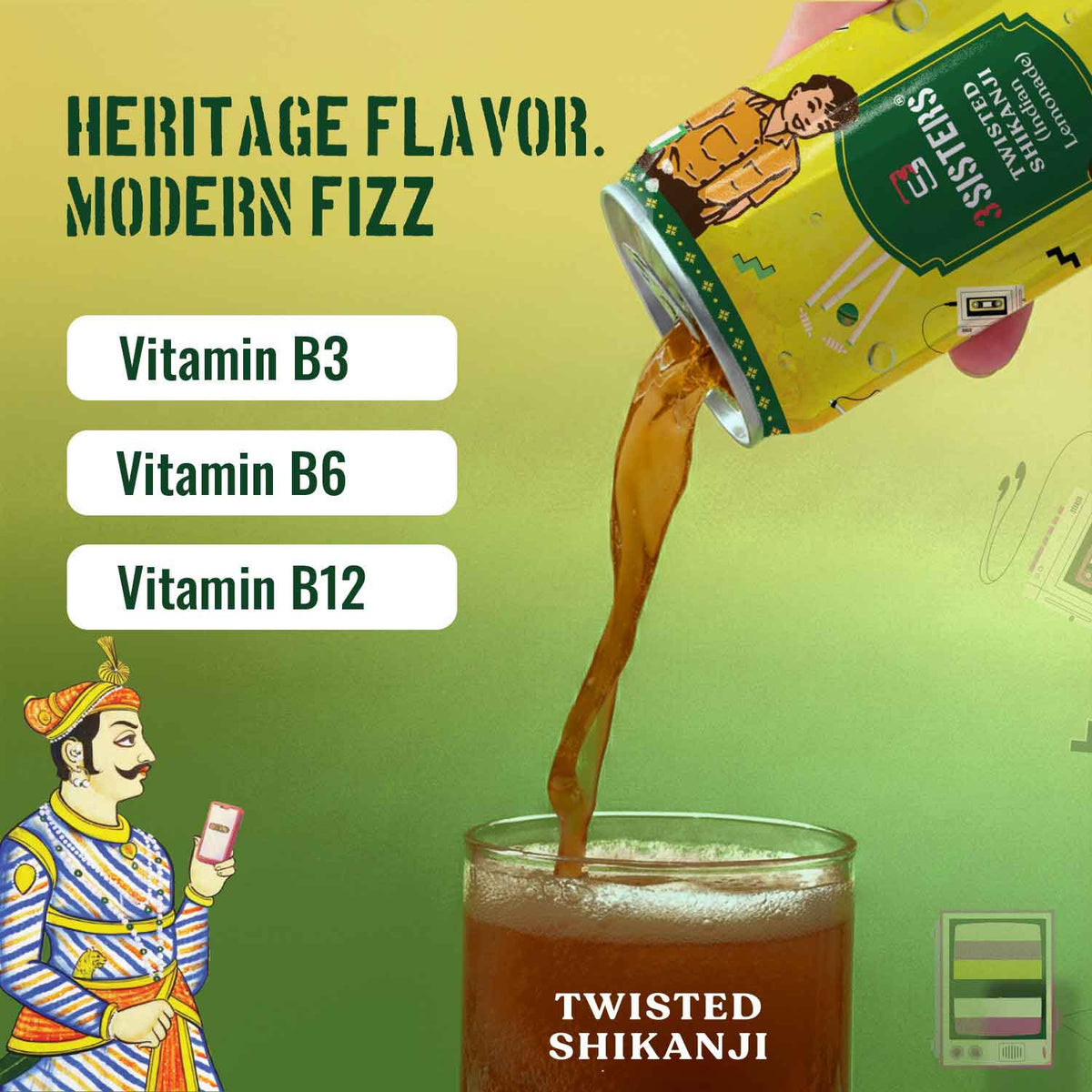 Packed with vitamins B3, B6 and B12, every can of 3Sisters Twisted Shikanji Soda is a winning mix of health benefits and authentic Indian flavors. And guess what - we offer you a pack of 12 cans together! This means more taste and more fun in every pack.